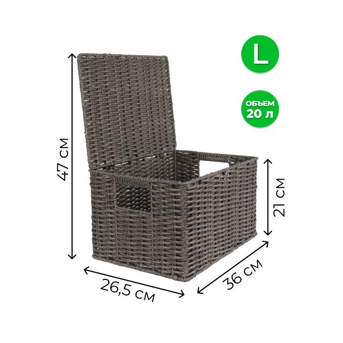 Корзина плетеная с/крыш L 360*260*200-mpl-fbo иск/ротанг, серый 265225