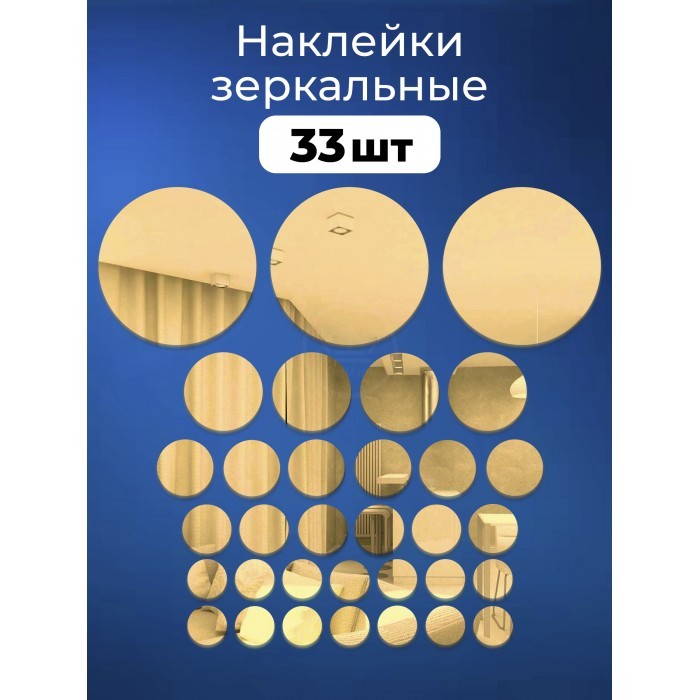 Интерьерные зеркальные наклейки Круги-1 набор ( 32/33 штук ) золото 264243