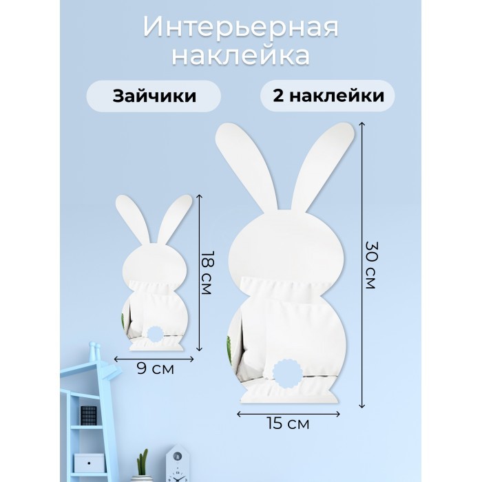 Интерьерные зеркальные наклейки Зайка 2шт ( 30*15см-1шт + 18*9см-1шт ) серебро 265531