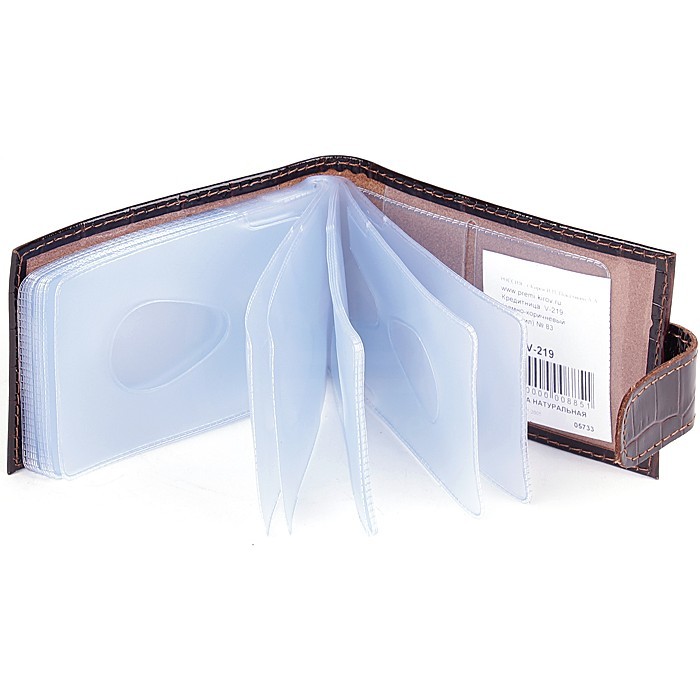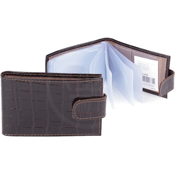 Кредитница Premier-V-219 натуральная кожа (18 листов, с хляст) натуральная кожа коричневый темный крокодил (83) 123648