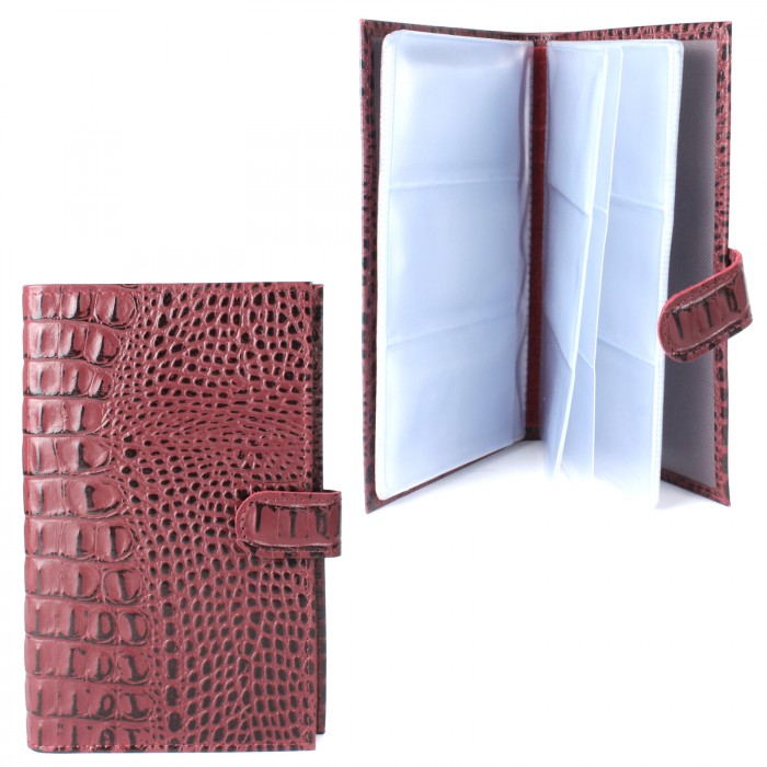 Визитница Croco-В-204 (с хляст, 3х рядная 72 карты) натуральная кожа бордо кайман (68) 214332