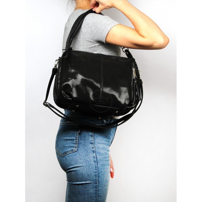 Сумка женская натуральная кожа ADEL-278 (отделка ИСК/КОЖА), 1 отд, плечевой ремень, черный SALE 262268